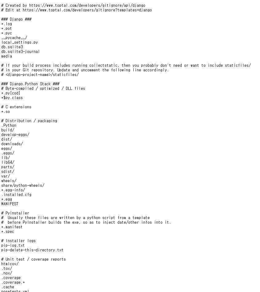 다음과 같이 .gitignore 기본 설정이 나오는데 이것을 ctrl+A 키로 전체 클릭하신 후에 복사하셔서