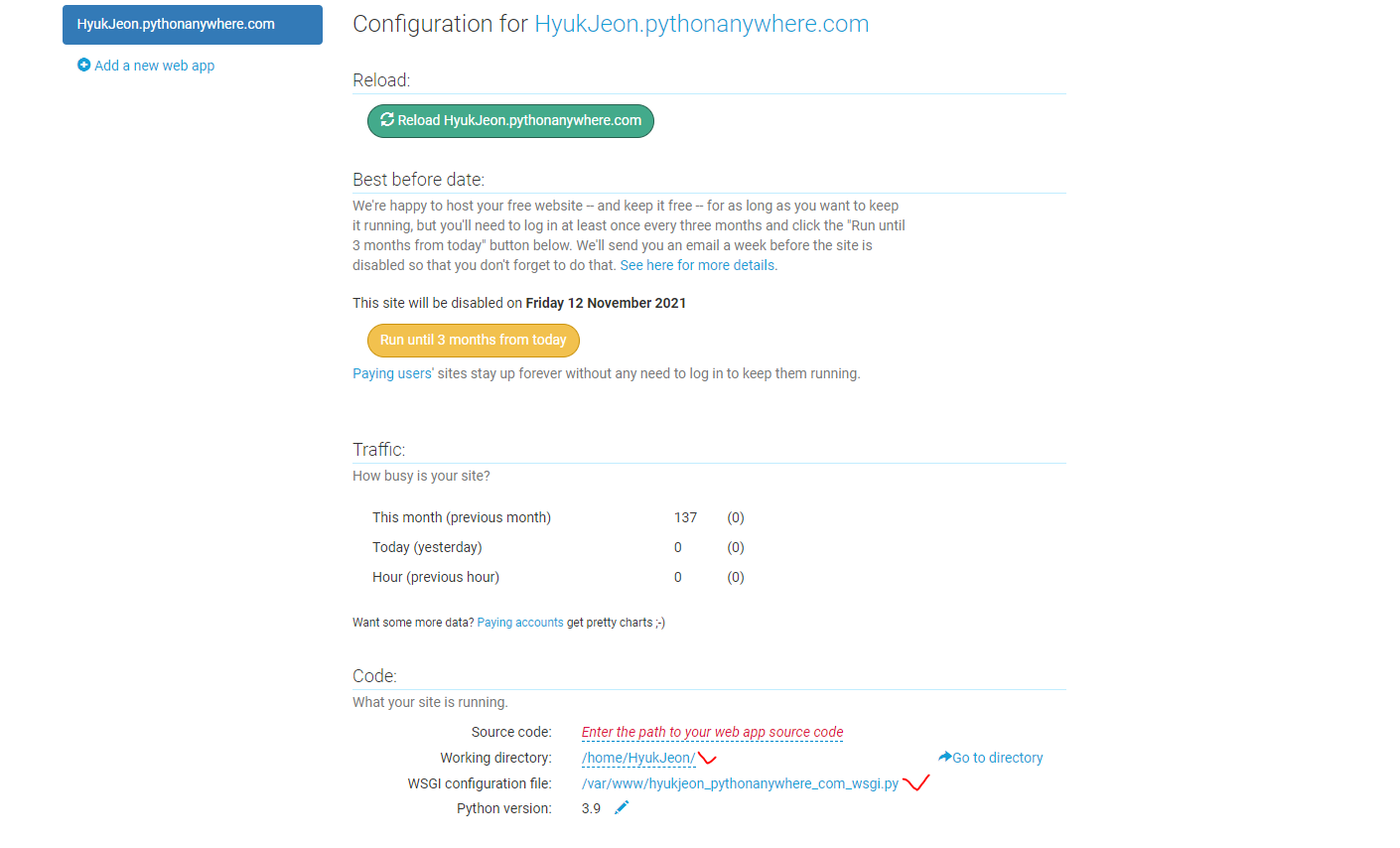 이번 시간에는 무료 호스팅인 파이썬 애니웨어(pythonanywhere)를 통한 배포를 실습했습니다.