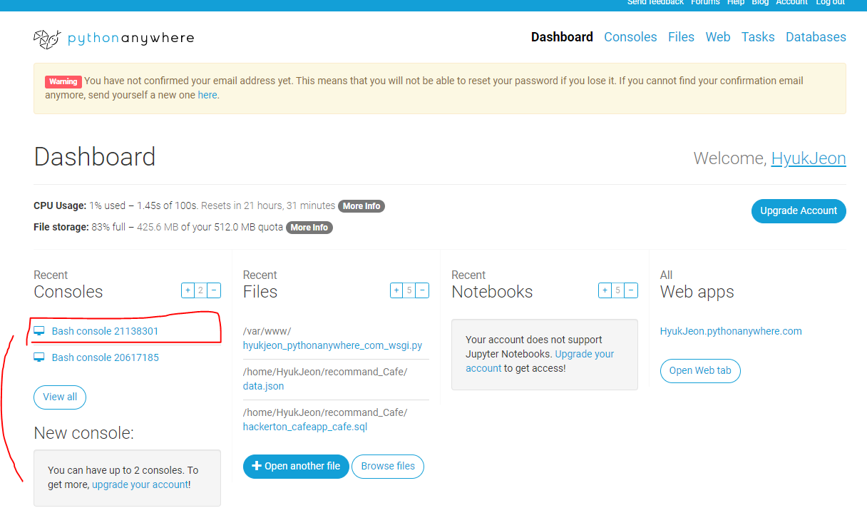 파이썬 애니웨어에 배포하기 위해 먼저 파이썬 애니웨어에 가입합니다.