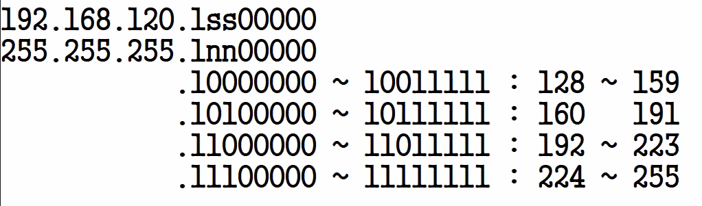 | [네트워크] 210.130.70.0 255.255.255.0 네트워크를 8개의 서브 네트워크로 나누세요 (0) | 2022.04.30 |