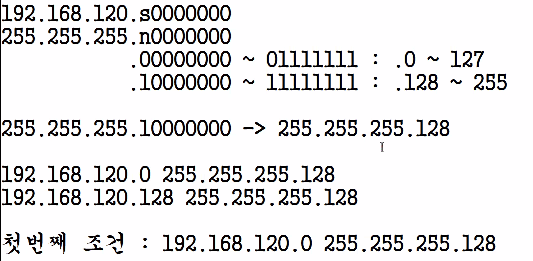 그렇게 되면 1개의 네트워크당 128개의 IP를 할당할 수 있게 되고