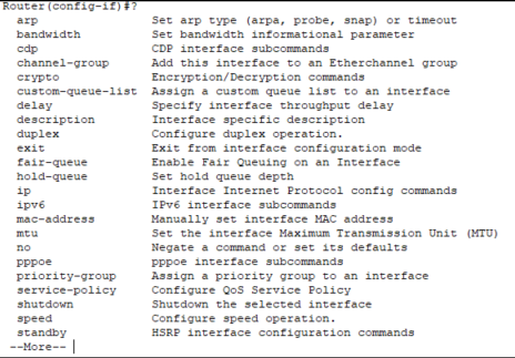 // Command Line에 interface fastethernet0/0을 입력하여 진입 ?를 이용하여 manual 확인