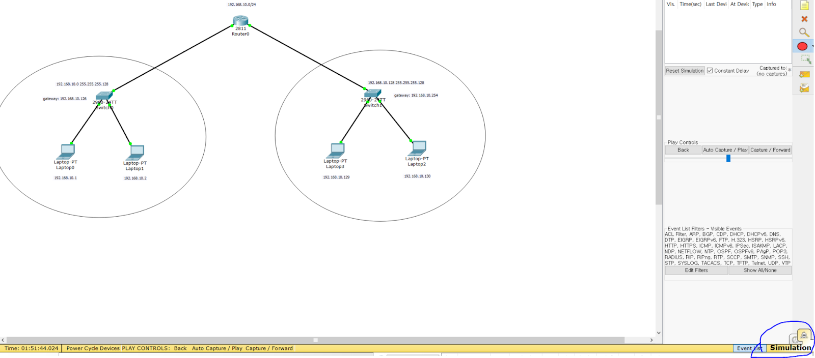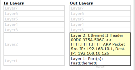 각 단계에서 어떻게 동작하는지는 패킷 트레이서 Simulation 모드에서 Capture Forward를 한 단계씩 수행하여