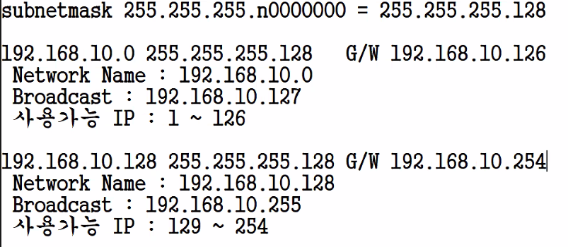 192.168.10.0 ~ 192.168.10.127