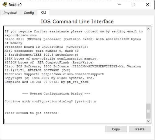 Router CLI에서 Ctrl+C를 눌러 초기 설정에서 빠져나온다