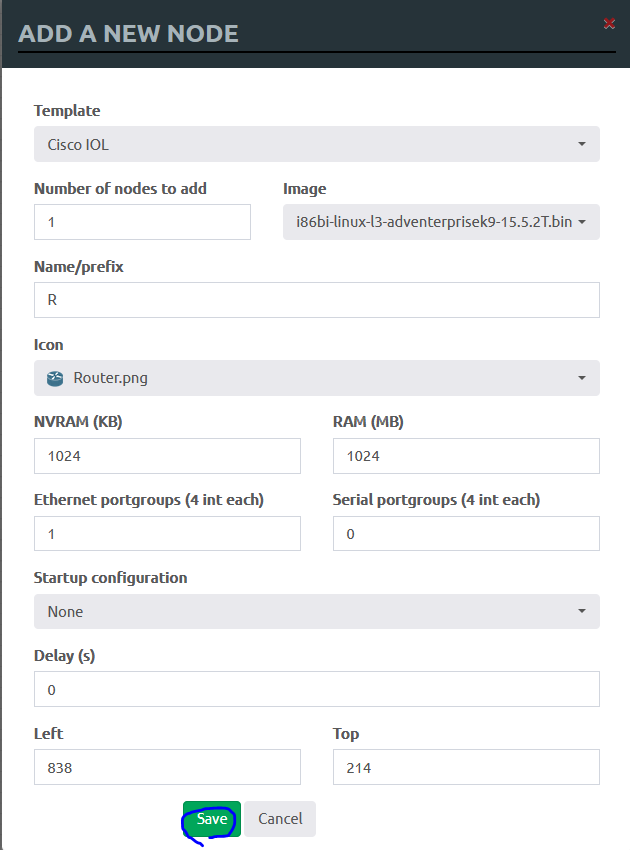 This guide is based on: Recommended IOL image versions: Note: The older IOL versions might not work. Avoid using IOL L3 15.5.2T (it has serious freeze console bug after some time of running) Type EVE Image Name Version NVRAM RAM L2/L3 Switch i86bi_linux_l2
