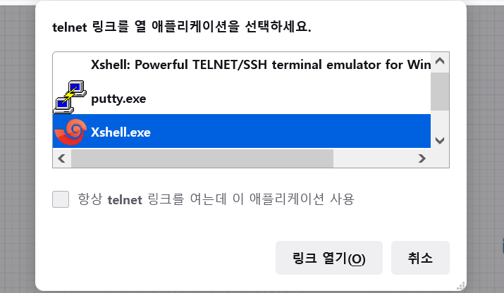 #만약 없으시다면 아래쪽에 다른 애플리케이션 선택을 누른 후 Xshell.exe를 찾아주셔야 합니다