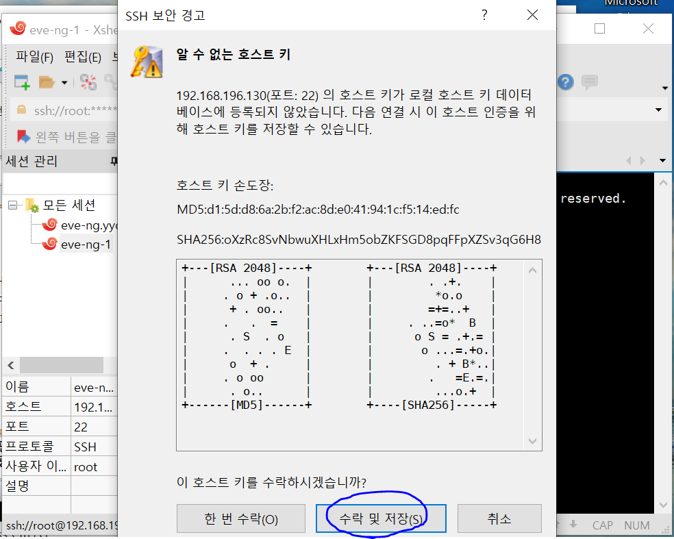 그럼 다음과 같이 알 수 없는 호스트 키라고 뜨는데