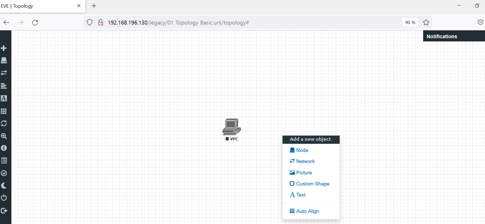 EVE-NG 토폴로지 화면에서 우클릭을 하여 Node를 클릭합니다