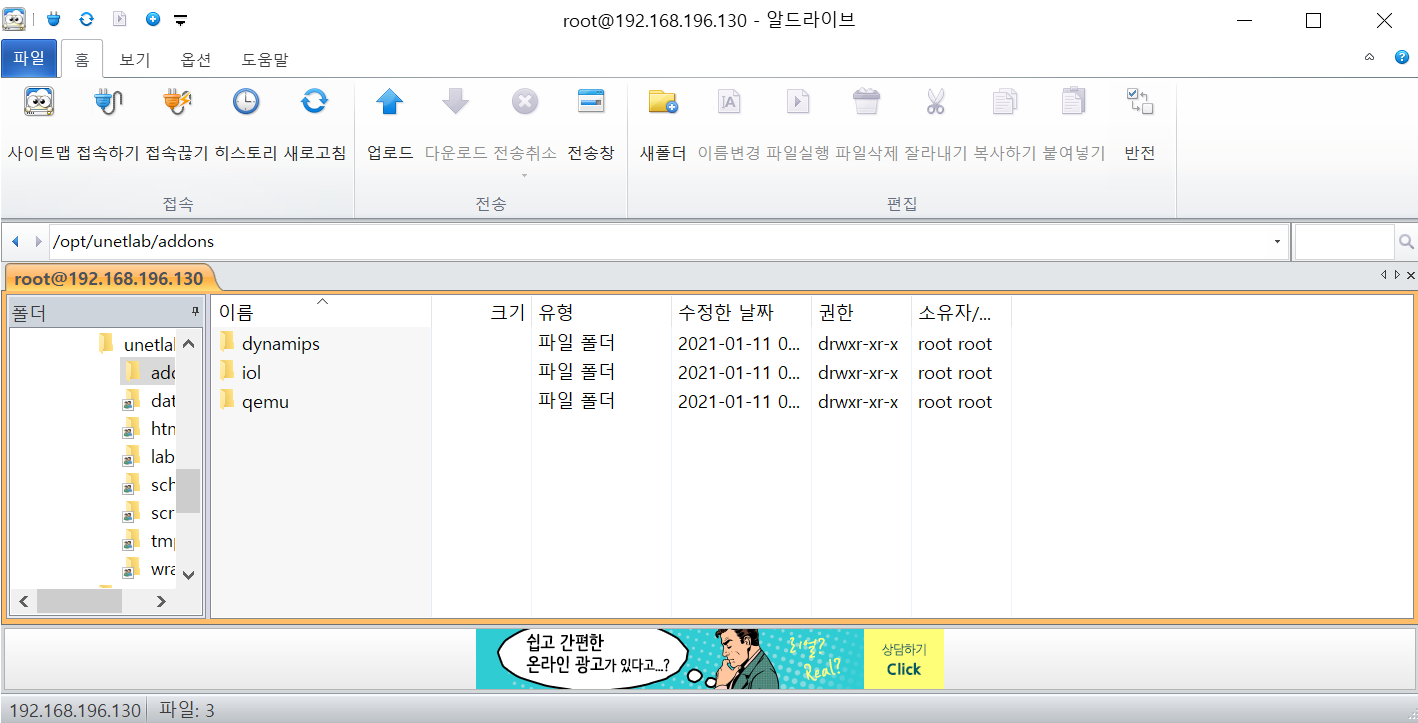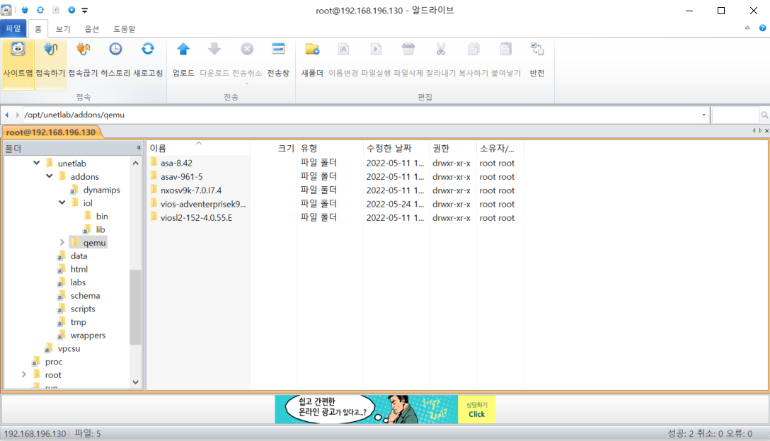 각각 알드라이브 /opt/unetlab/addons 경로에 있는