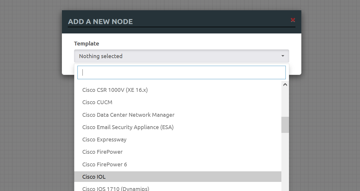여러 장비가 보일 텐데 Cisco IOL을 선택해줍니다