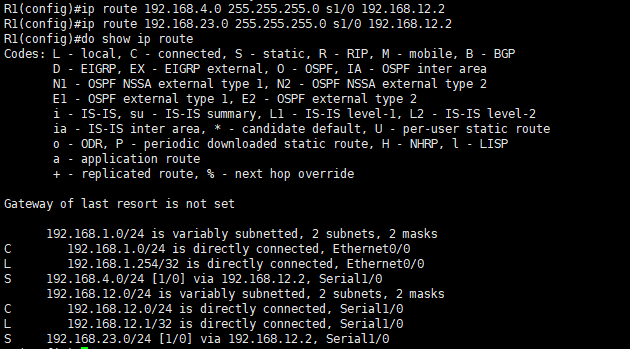 ip route 192.168.1.0 255.255.255.0 s1/0 192.168.12.1