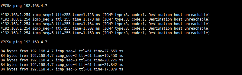 정적 경로를 설정해준 후 정상적으로 VPC6와 VPC7이 통신이 가능한 상태가 된 것을 확인할 수 있다