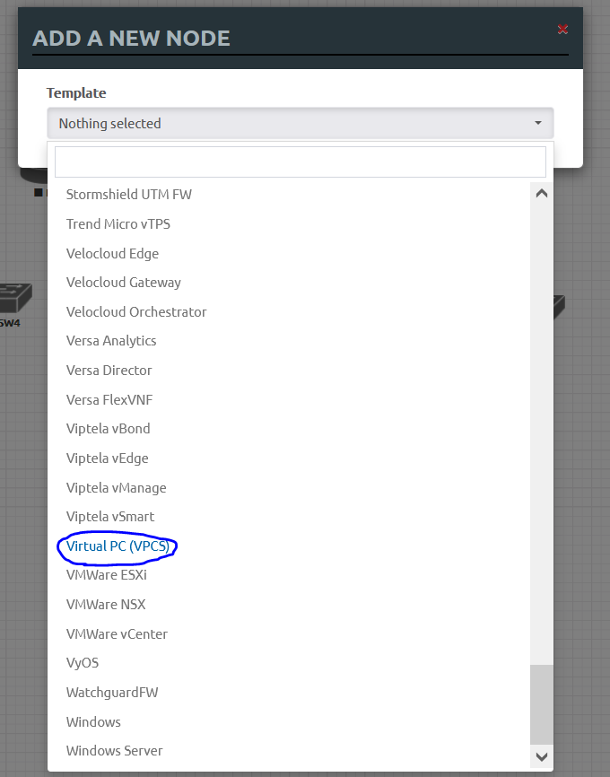 빈 화면 마우스 우클릭 - [Node] - [Virtual PC (VPC5)] 클릭