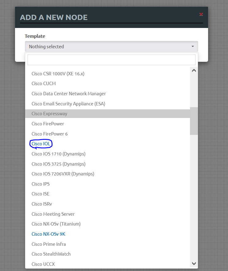 빈 화면 마우스 우클릭 - [Node] - [Cisco IOL] 클릭