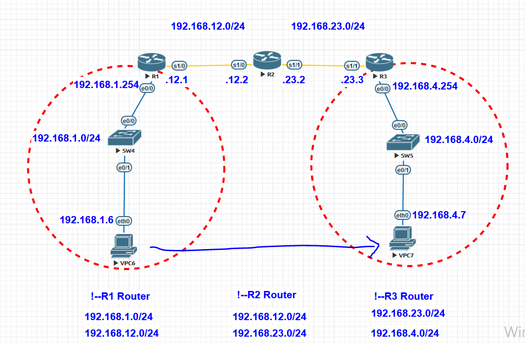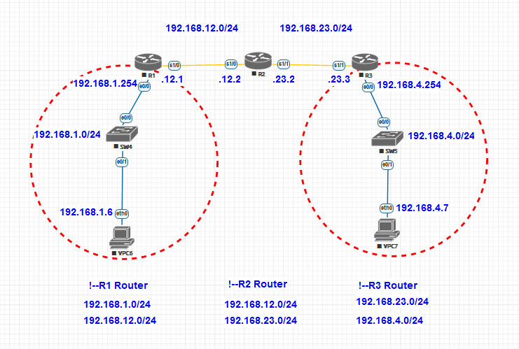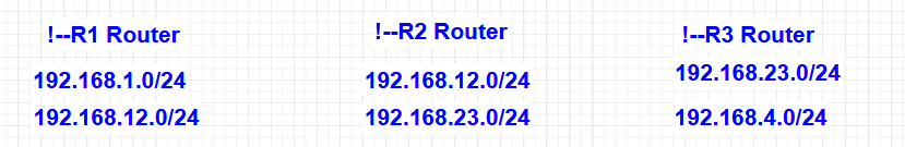 네트워크: 192.168.1.0/24, 192.168.4.0/24, 192.168.12.0/24, 192.168.23.0/24