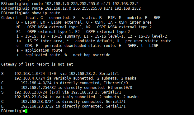 ip route 192.168.1.0 255.255.255.0 s1/1 192.168.23.2