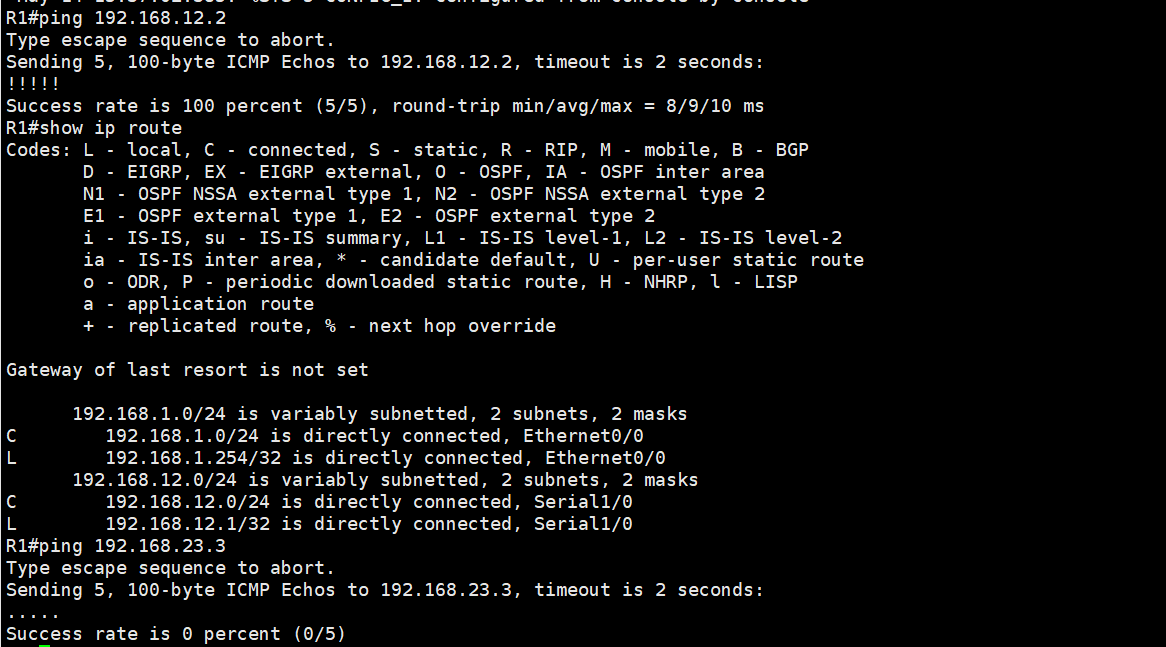 ip route 192.168.23.0 255.255.255.0 e0/1