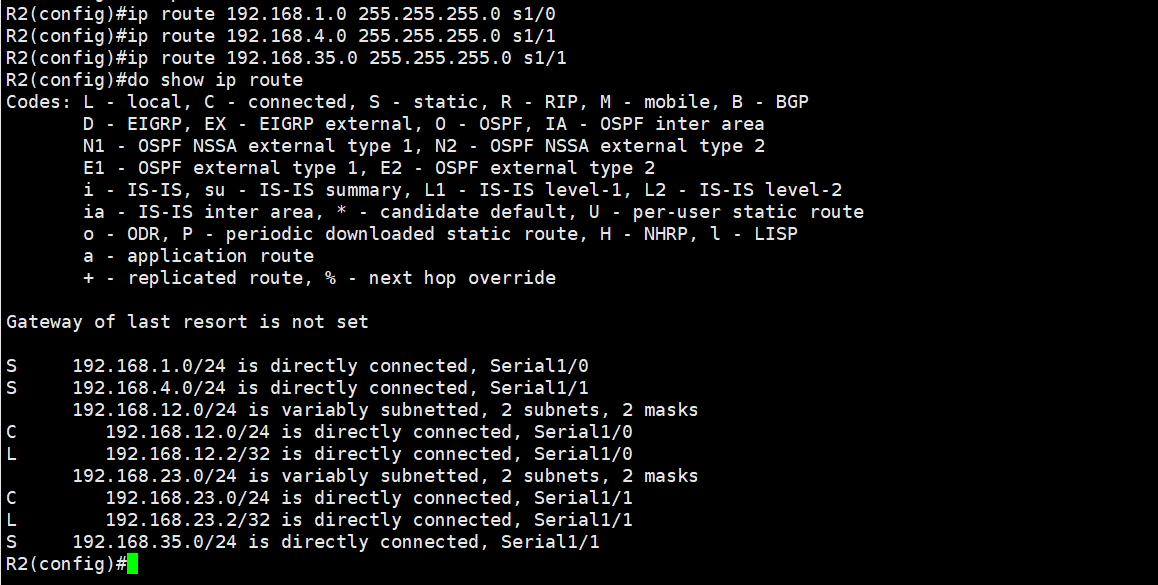 ip route 192.168.23.0 255.255.255.0 s1/0