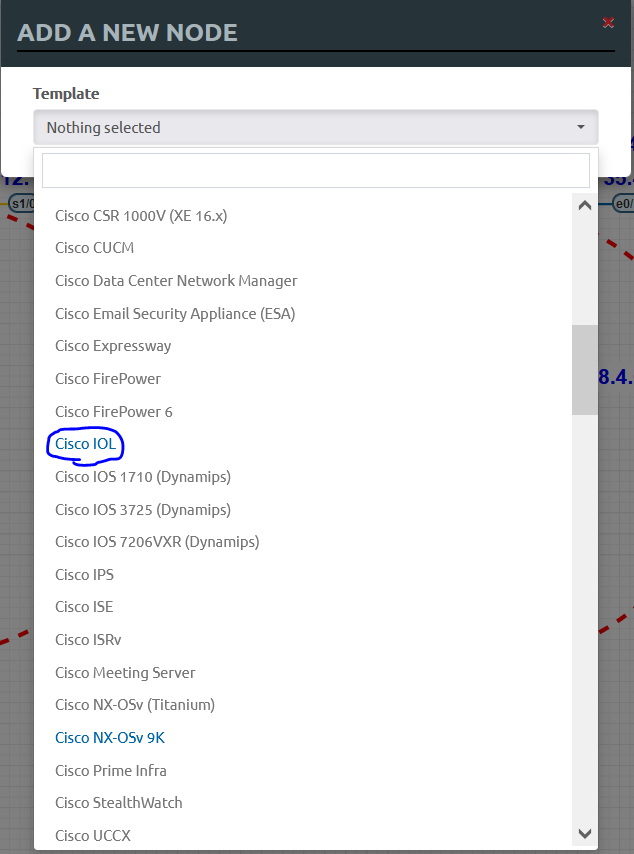 빈 화면 마우스 우클릭 - [Node] - [Cisco IOL] 클릭