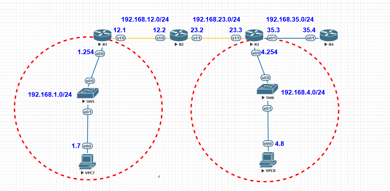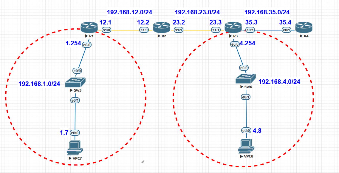 네트워크: 192.168.1.0/24, 192.168.4.0/24, 192.168.12.0/24, 192.168.23.0/24, 192.168.35.0/24