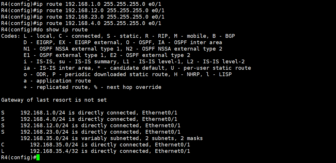 ip route 192.168.4.0 255.255.255.0 e0/1
