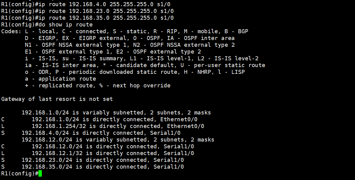 ip route 192.168.1.0 255.255.255.0 s1/0