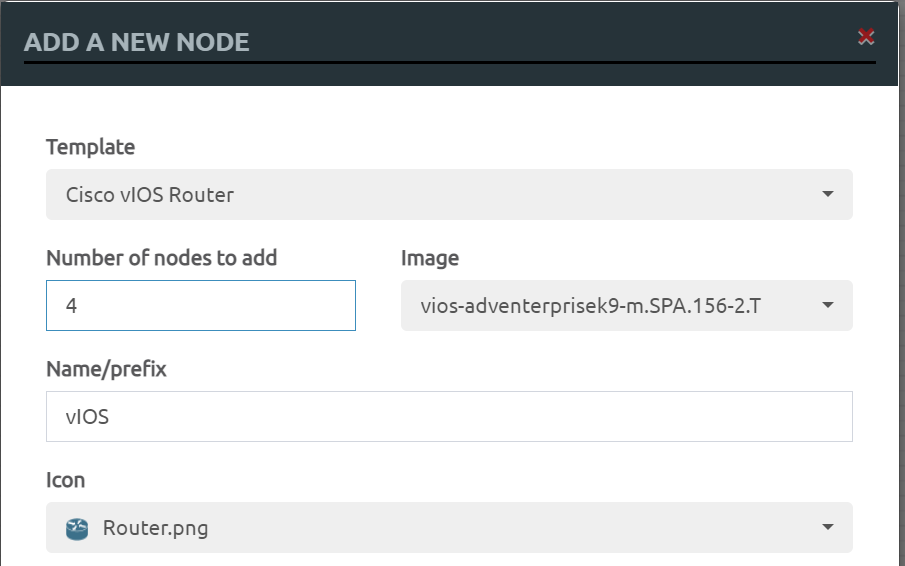 토폴로지 화면에서 마우스 우클릭 후 [Cisco vIOS Router] 선택