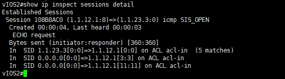 !--vIOS2 inspect session 확인 명령