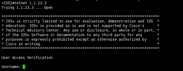 설정 후 vIOS1에서 외부 네트워크인 vIOS3으로 텔넷을 해보면 성공한다