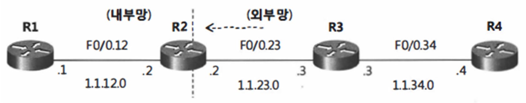 permit ospf host 1.1.23.3 any // ospf를 제외한 나머지는 차단