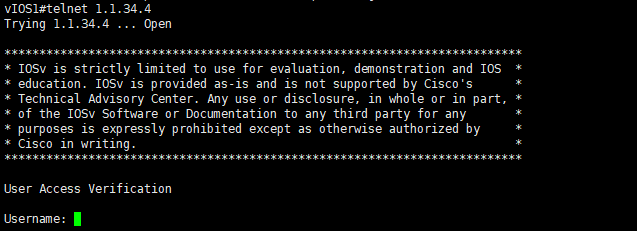 5) 설정 후 vIOS4 -> vIOS1으로 ping, telnet으로 확인해보자.