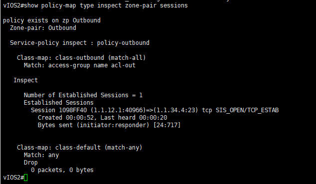 - vIOS2에서 현재 ZFW에 의해서 허용된 세션 정보를 확인할 수 있다.