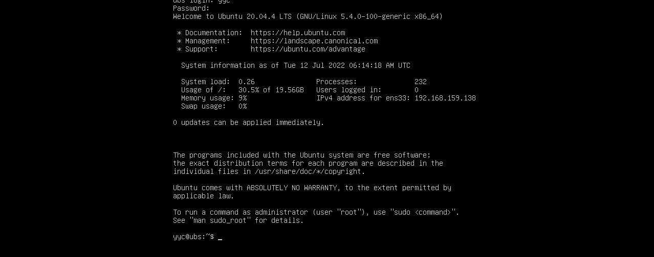 정상적으로 우분투 서버가 설치된 것을 확인할 수 있다!
