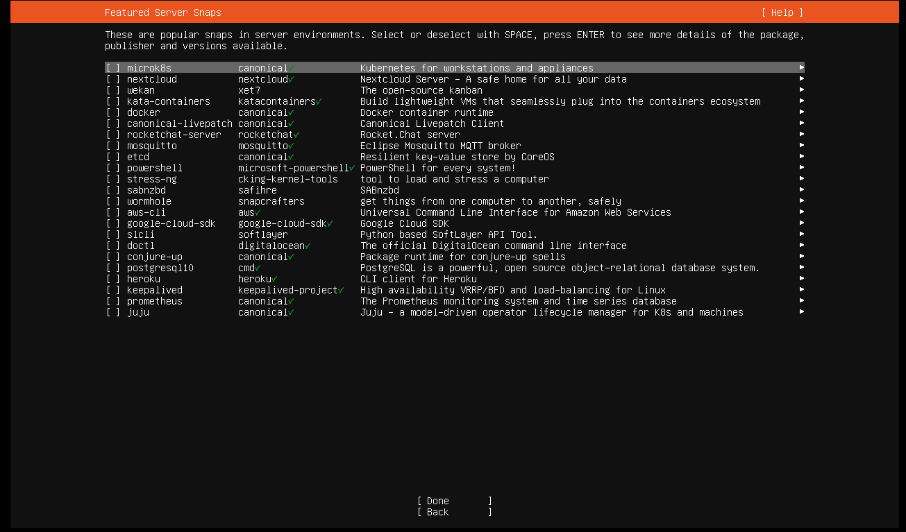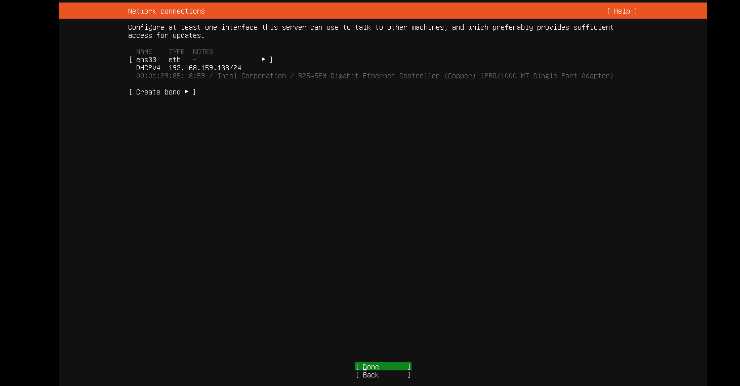Network connections - [ens eth -] - [DHCP] - [Done]