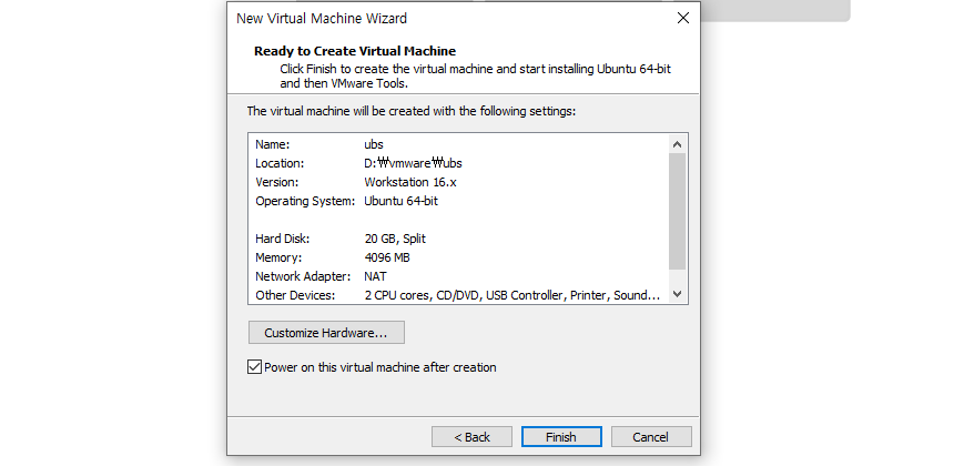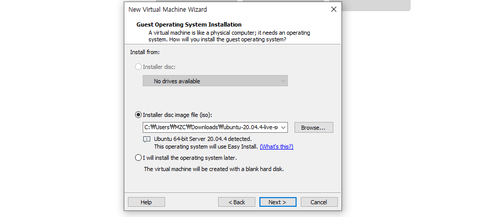설치한 Ubuntu Server 20.04 LTS ISO 파일 선택 - [Next]