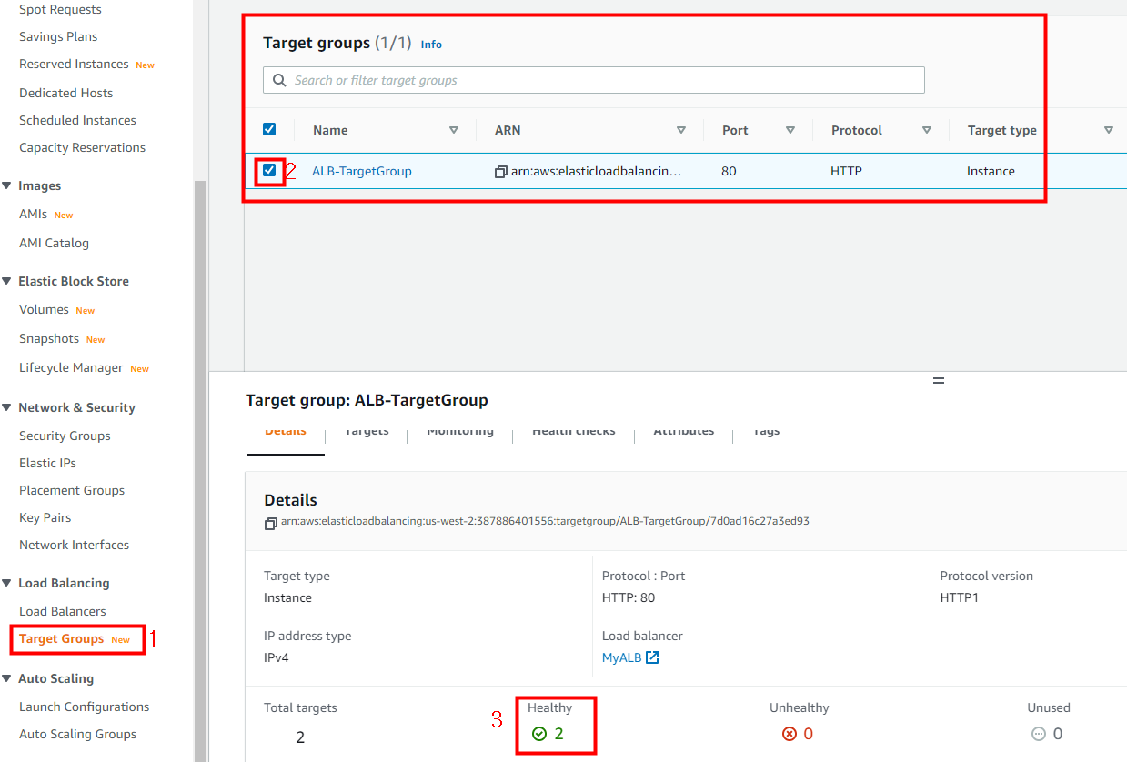 타겟 그룹에서 인스턴스의 상태가 healthy가 되면 다음으로 넘어갑니다.