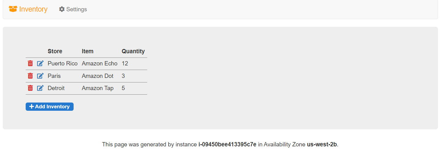 어플리케이션이 데이터베이스에 연결되어 기본 데이터를 가져오고 정보를 화면에 나타냅니다.