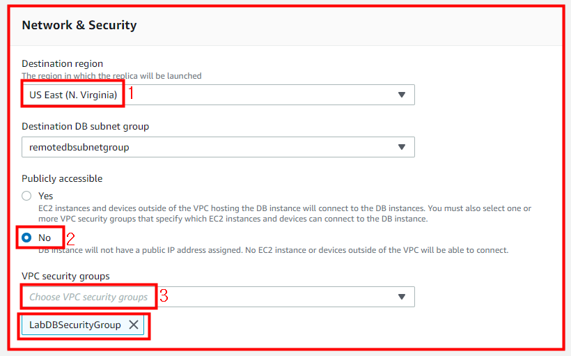 Destination region은 복제본을 생성할 리전을 선택해주세요.