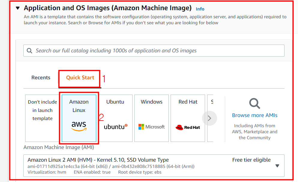 Quick Start에서 Amazon Linux 옵션을 선택합니다.