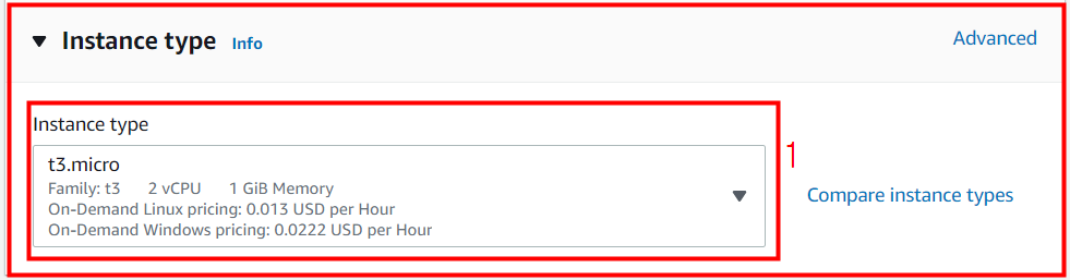 Instance type에서 t3.micro를 선택합니다.
