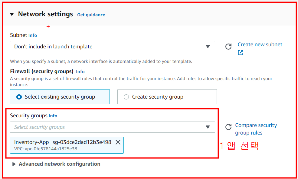 Security groups에서 본인이 만든 앱을 선택해주세요.