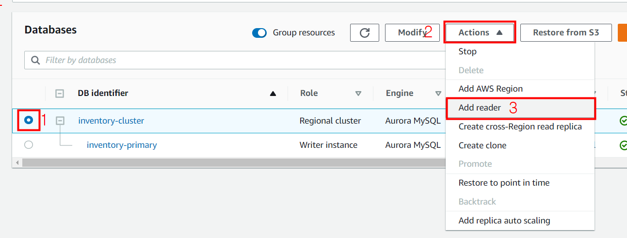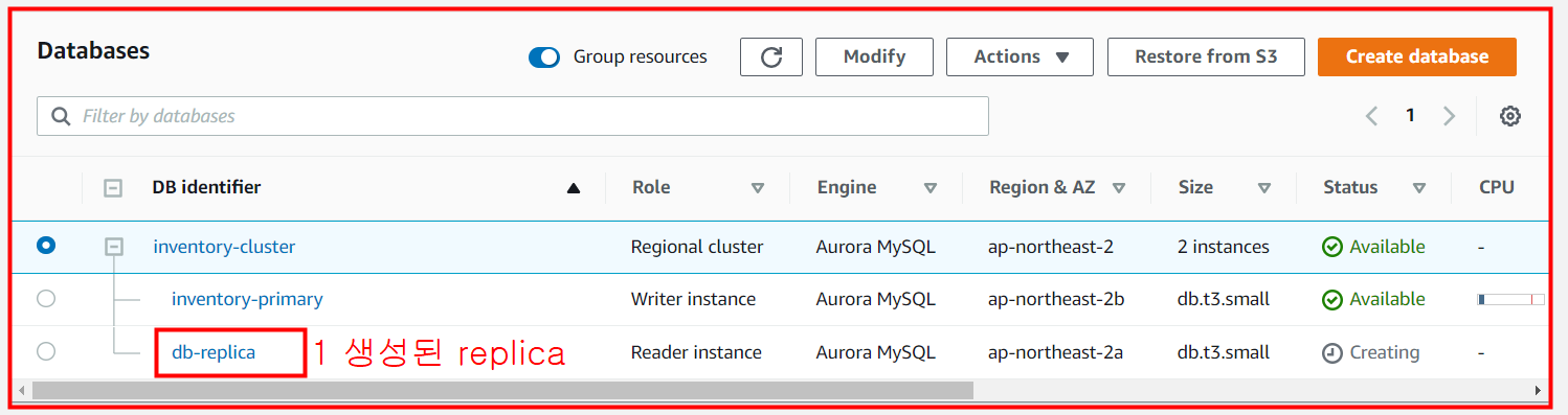 DB 목록에 reader replica가 생성된 모습입니다.