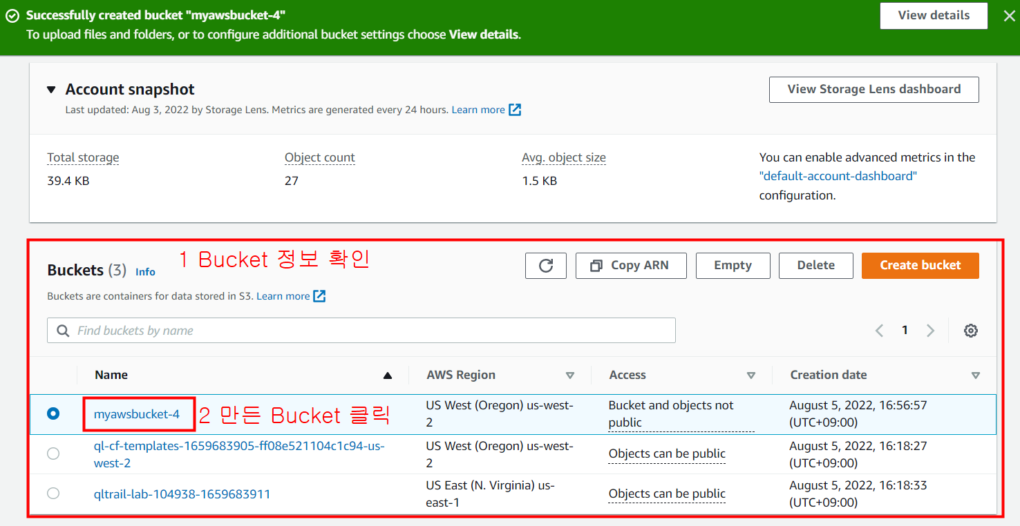 | [AWS] Bucket에 객체를 업로드하고 퍼블릭 액세스하기 실습 (0) | 2022.08.05 |